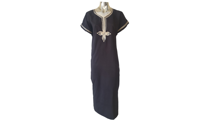 ✔ Short sleeve traditional dress.✔ Made in Egypt.✔ Black colour dress with beautiful embroidery on the front.✔ Long dress and different sizes available.